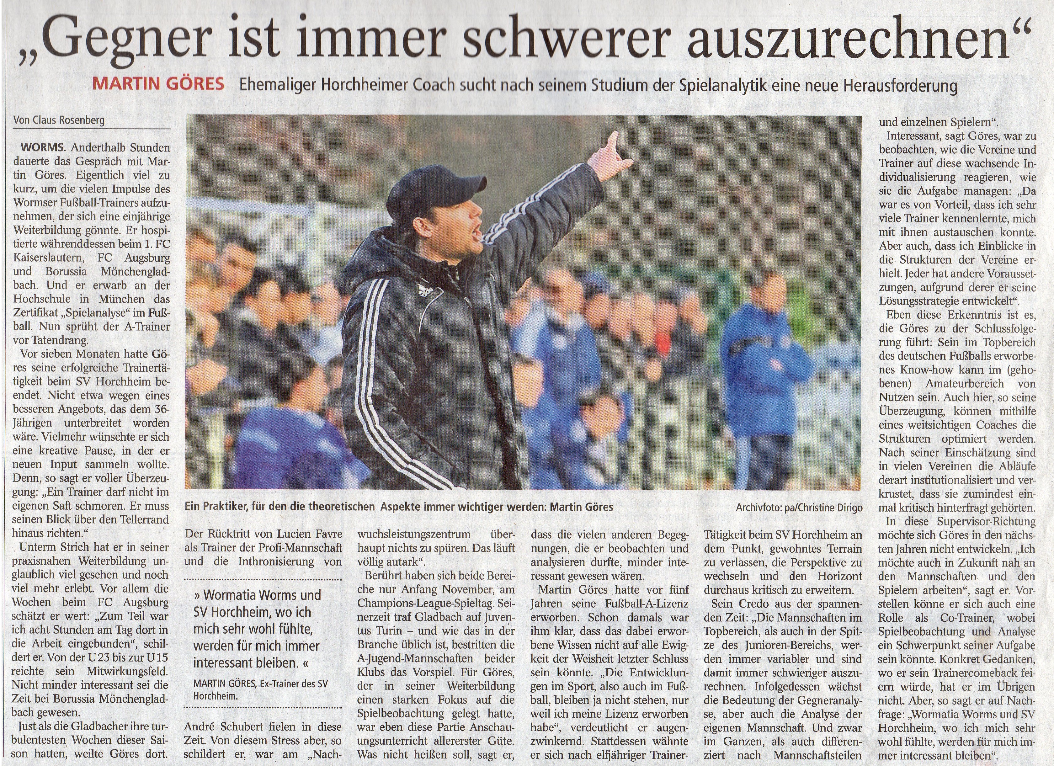 Worms. Anderthalb Stunden dauerte das Gespräch mit Martin Göres. Eigentlich viel zu kurz, um die vielen Impulse des Wormser Fußball-Trainers aufzunehmen, der sich eine einjährige Weiterbildung gönnte. Er hospitierte