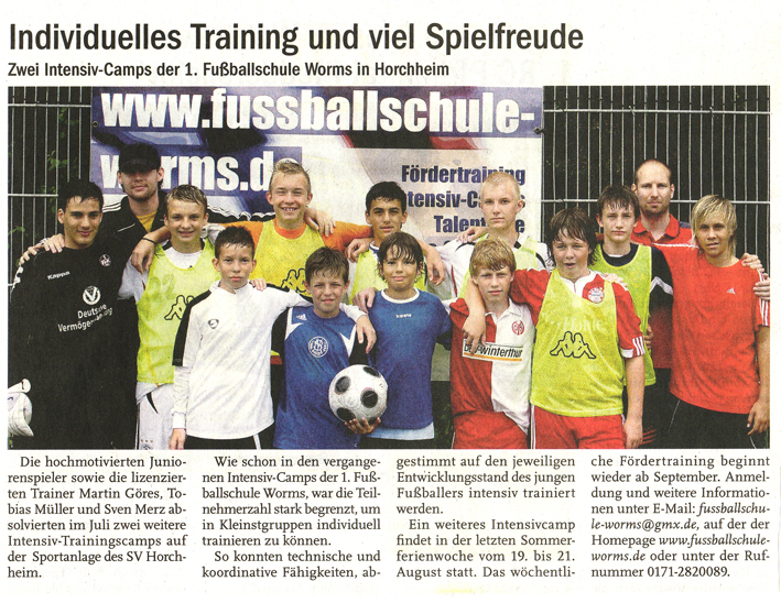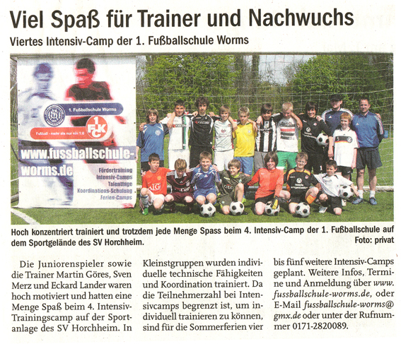 Zwei Intensiv-Camps der 1. Fußballschule Worms in Horchheim