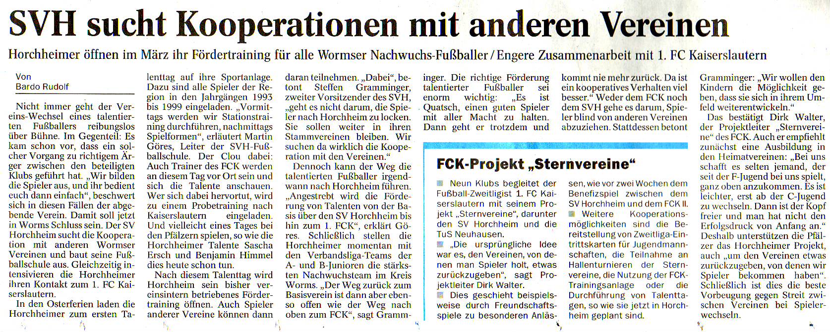 Aufgrund der guten Zusammenarbeit und gemeinsamer Projekte wurde im vergangenen Jahr der Kooperationsvertrag zwischen dem 1. FC Kaiserslautern und dem SV Horchheim verlängert...