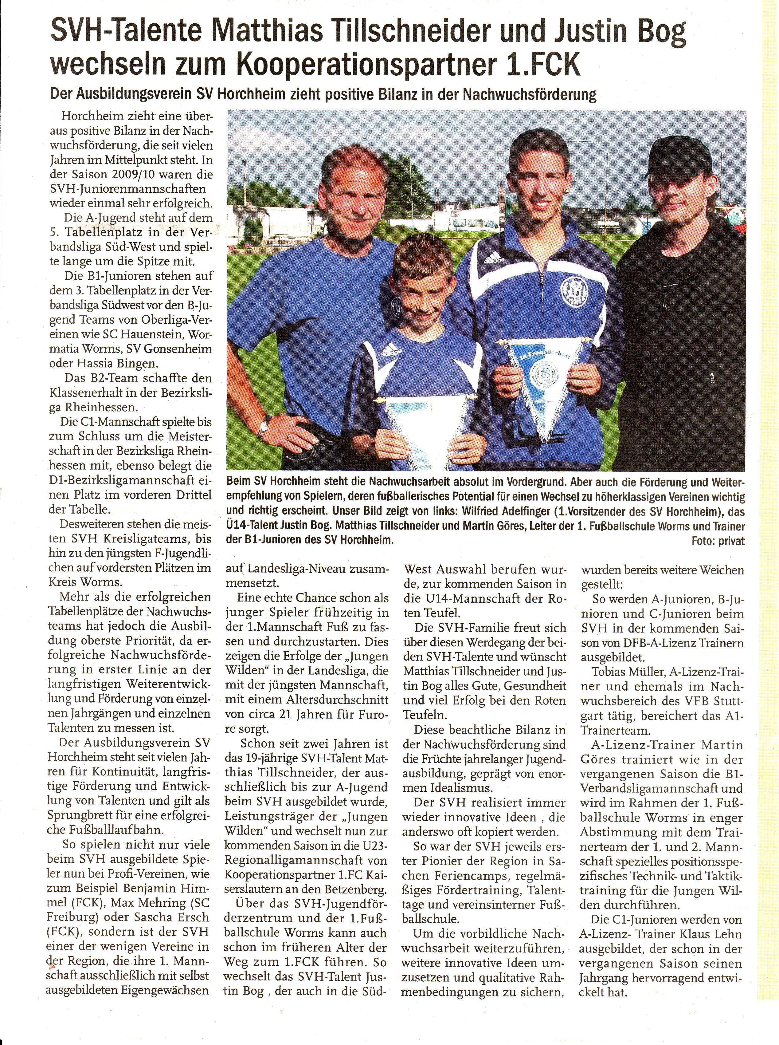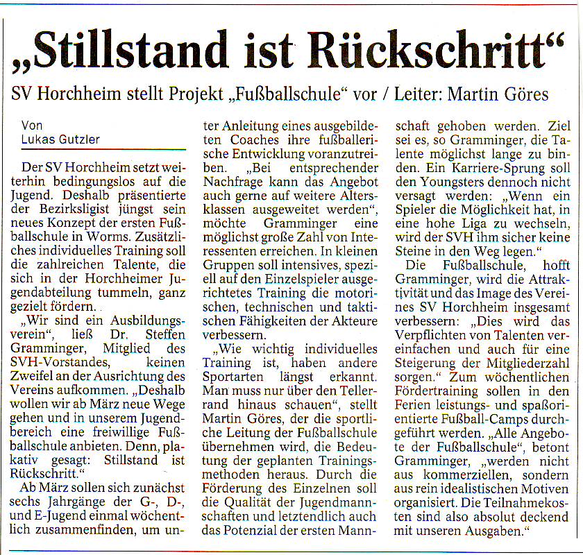 Ich freue mich im Nachhinein und bin doppelt froh, dass ich mit meinem Wunsch an den SV Horchheim herangetreten bin und mit Martin Göres, als dem sportlich Verantwortlichen Mann der 1. Wormser Fußballschule, einen guten Partner fand...