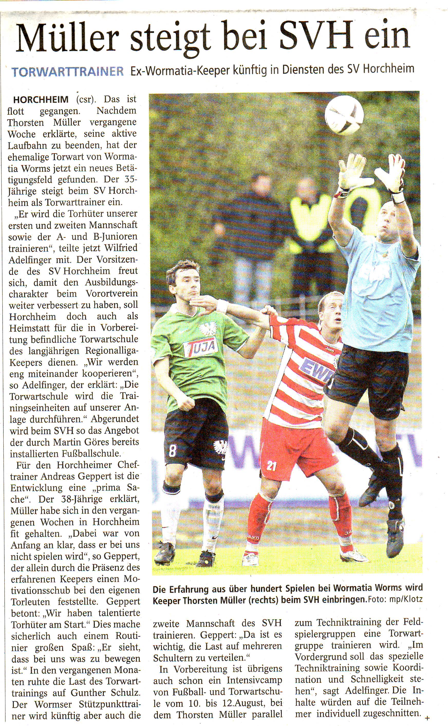 Gemeinsame Wege zur Nachwuchsförderung / Ex-Wormatia-Keeper Thorsten Müller neuer SVH-Torwarttrainer