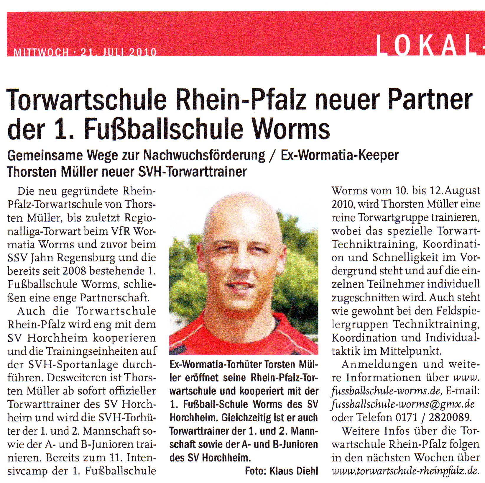 Die neu gegründete Rhein-Pfalz-Torwartschule von Thorsten Müller, bis zuletzt Regionalliga-Torwart beim VfR Wormatia Worms und zuvor beim SSV Jahn Regensburg und die bereits seit 2008 bestehende 1. Fußballschule Worms, schließen eine enge Partnerschaft...