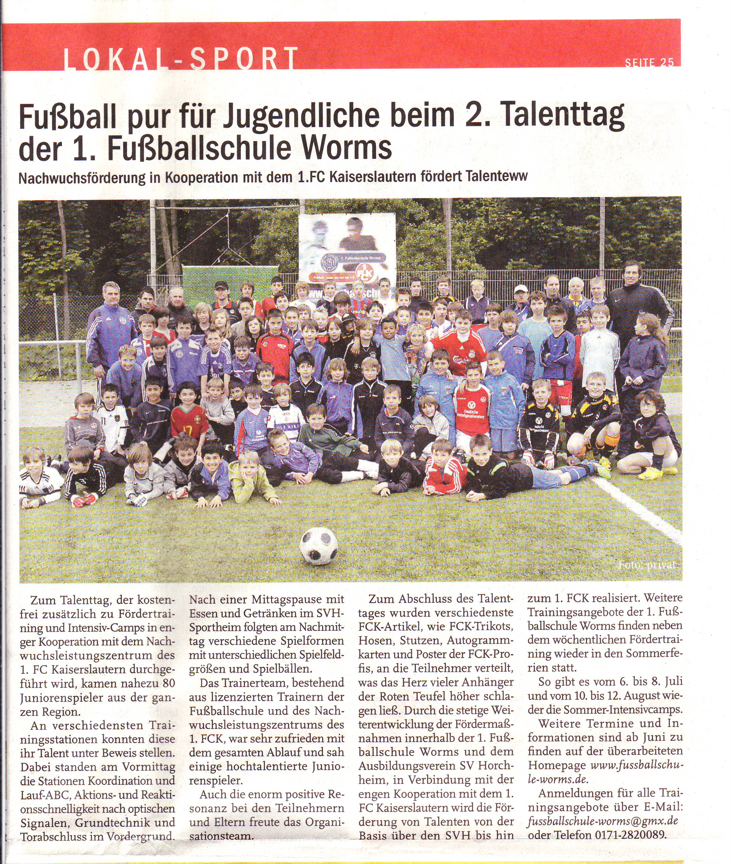 Nachwuchsförderung in Kooperation mi dem 1.FC Kaiserslautern fördert Talente